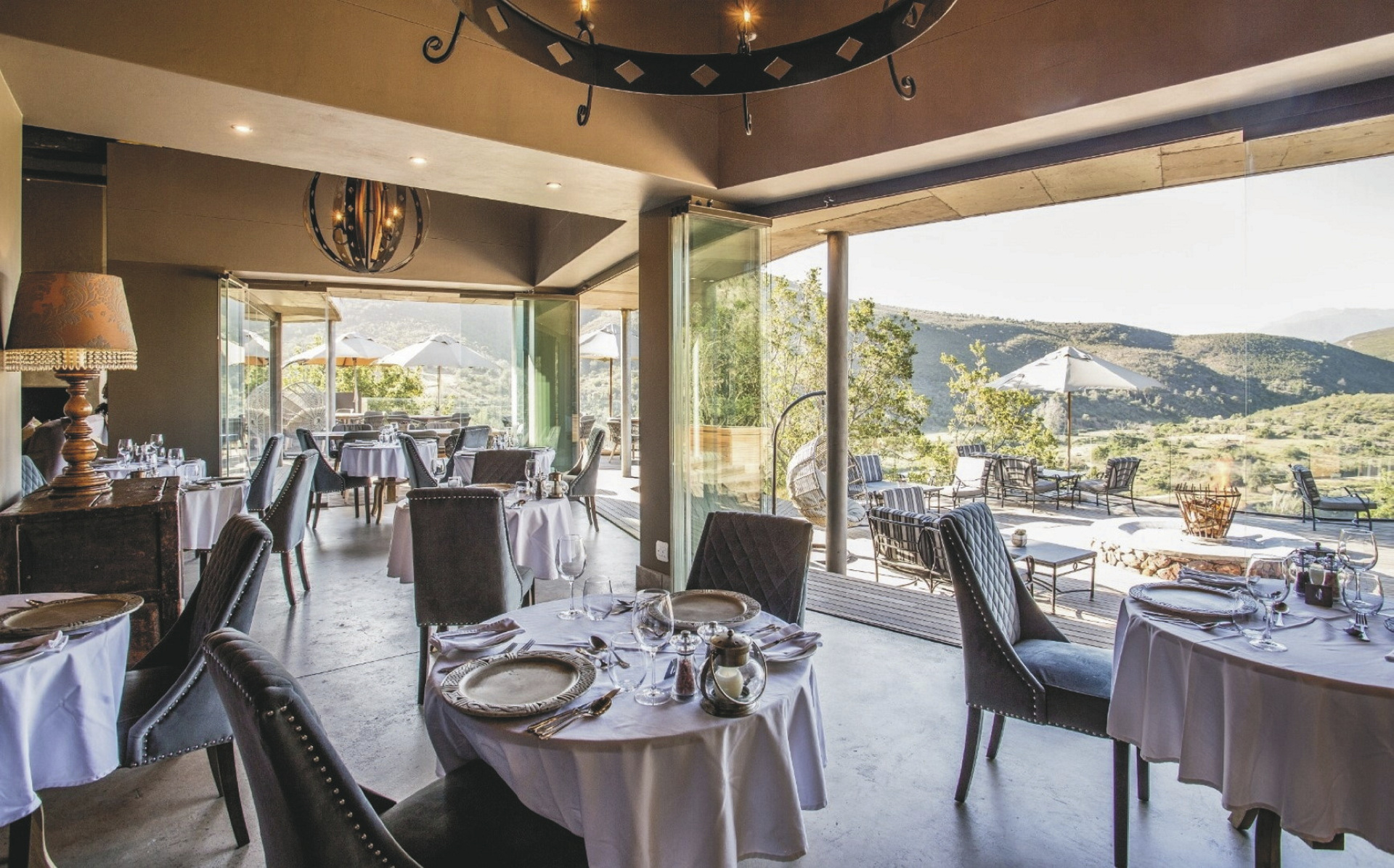 Außerhalb von Mossel Bay im privaten Botlierskop Game Reserve , 7 km abseits der N 2, George ca. 40 km und Kapstadt ca. 4 Fahrstunden entfernt.