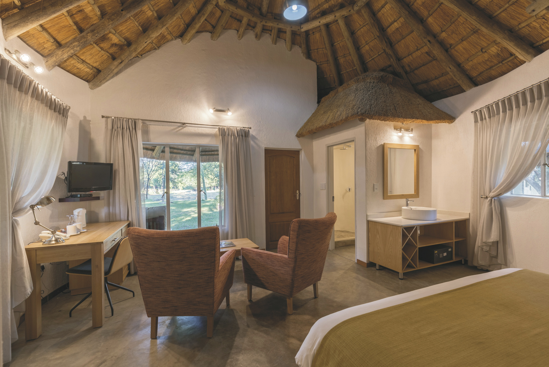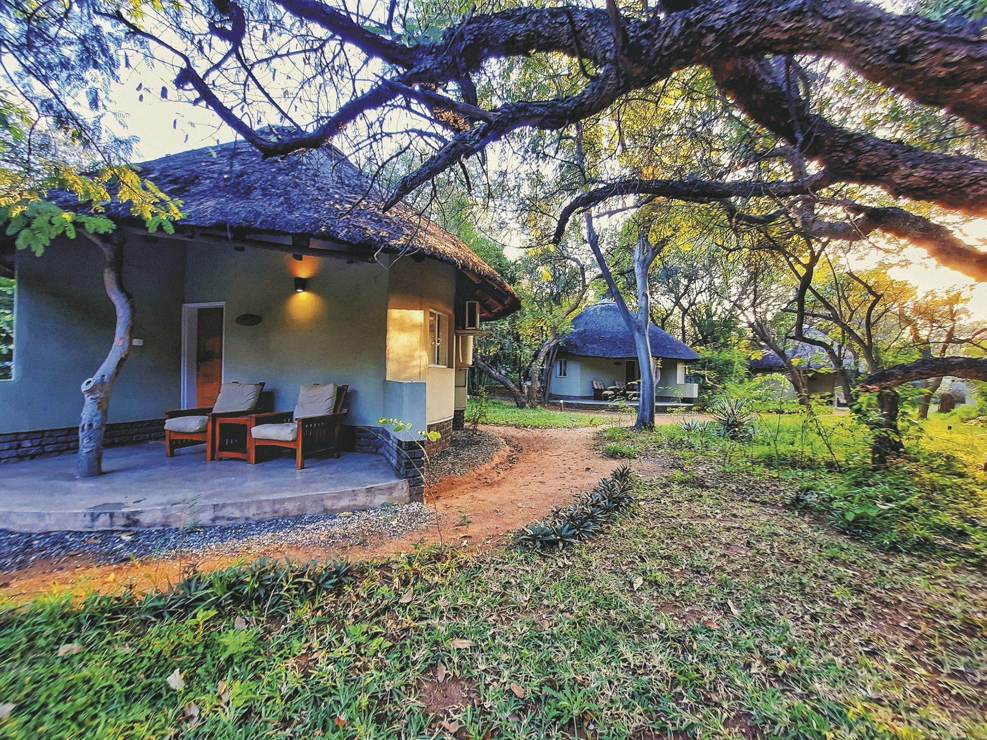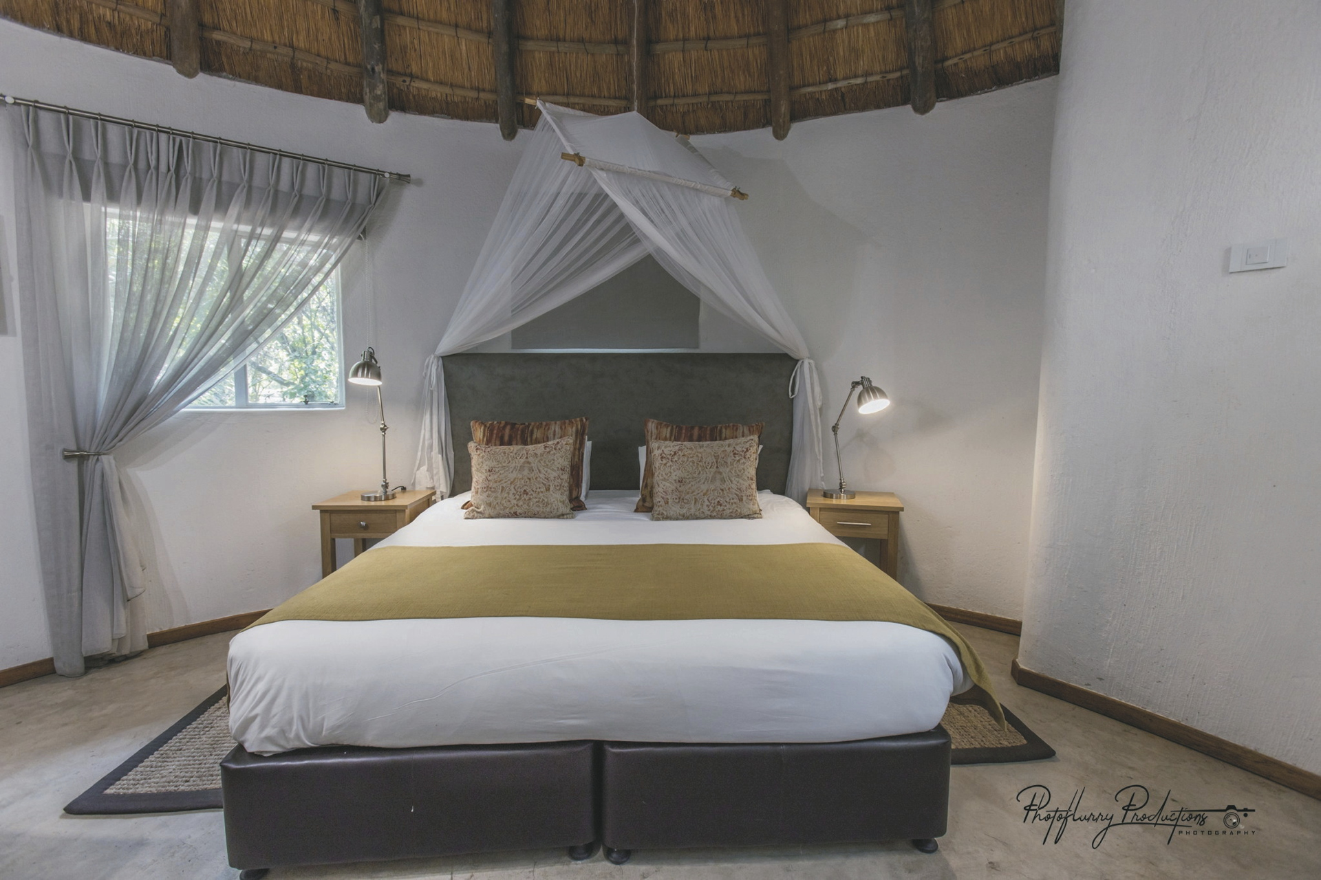 Die 31 frisch renovierten afrikanischen Rondavels mit Strohdach liegen verteilt in der wunderschönen Gartenanlage. Sie verfügen alle über ein eigenes Bad, Fön, Radio, Klimaanlage, Telefon, Moskitonetz, Kühlschrank, Tee-/Kaffeezubereiter, kostenfreies WLAN, TV und eine überdachte Veranda sowie einen eigenen Parkplatz. Die Luxus-Rondavels sind großzügiger. Die 4 Familien-Rondavels bieten Platz mit 2 Schlafzimmern, einer gemütlichen Lounge mit Kitchenette und einem gemeinsamen Badezimmer Platz für bis zu 4 Personen.