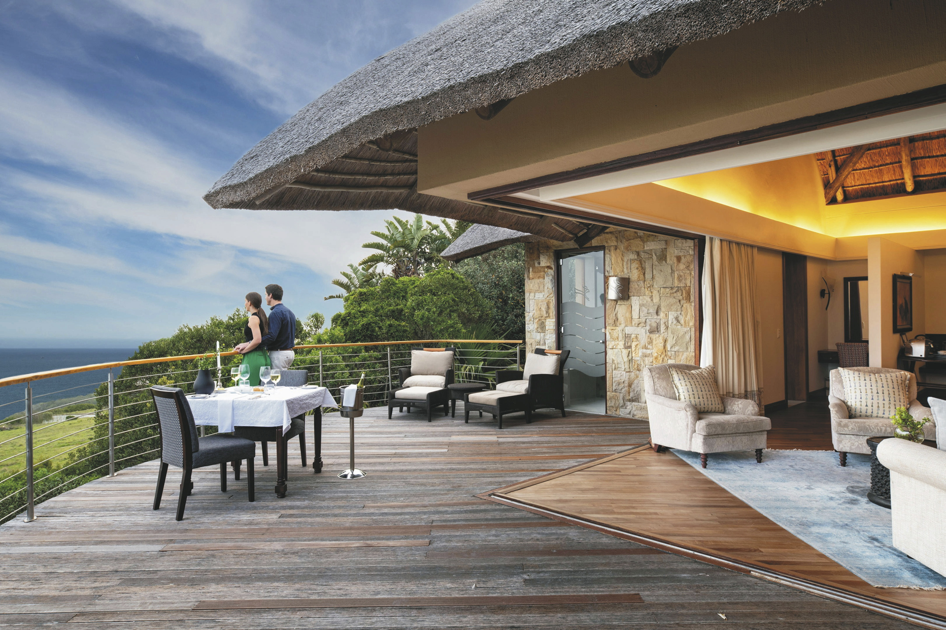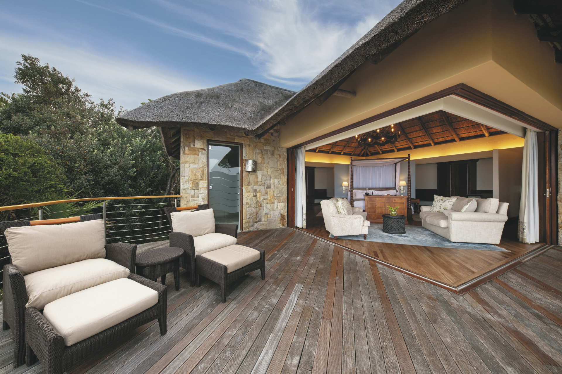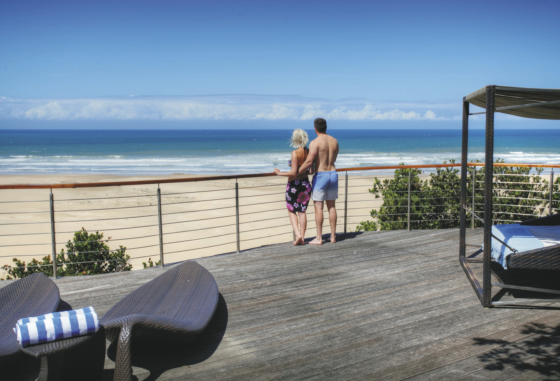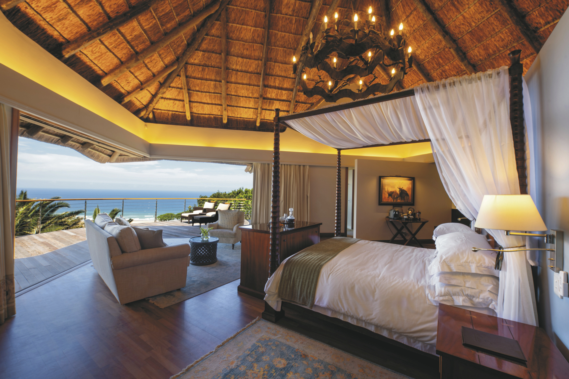 Die luxuriöse Boutique-Lodge in spektakulärer Lage bietet viele Aktivitäten und ist, da malariafrei, ein Traum für Familien. Im Hauptbereich finden Sie das Restaurant mit Terrasse, die Bar, ein kleines Fitnessstudio, Spa mit Sauna, kostenloses WLAN, Lounge mit Kamin, Bibliothek, ein Spielezimmer und natürlich einen Pool. Eine Sonnenterrasse befindet sich näher am Strand. Eingeschlossene Aktivitäten: Strandpicknick, Buschwanderung, Vogel- und Sternenbeobachtung, Angeln, Pirschfahrt. Optional: Sardinenrennen, Wal-Beobachtung, Tauchen (jeweils saisonal); Strandausritt, Bootssafari und Flussfahrt, Besuch einer Ananas-Plantage.