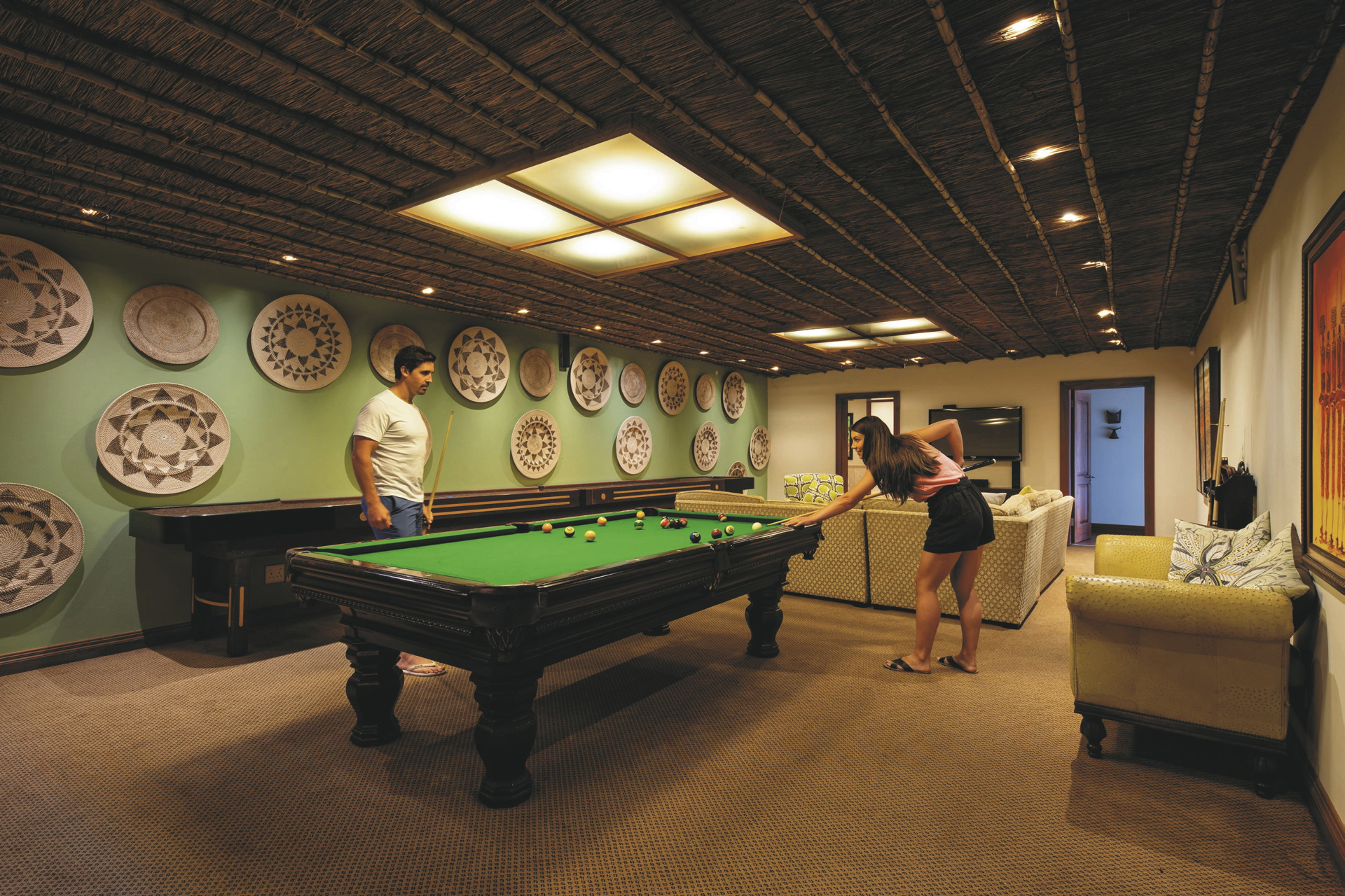 Für größere Familien und kleine Gruppen bietet sich das Private House an. Auf 2 Etagen verteilen sich 3 Schlaf- und Badezimmer, eine Fernsehlounge, die Küche sowie ein geräumiges Wohn-/Esszimmer mit TV und Kamin für gemeinsame Stunden. Jedes Zimmer hat entweder Zugang zur großen Terrasse, wo sich auch ein Plunge Pool befindet oder einen eigenen Balkon.