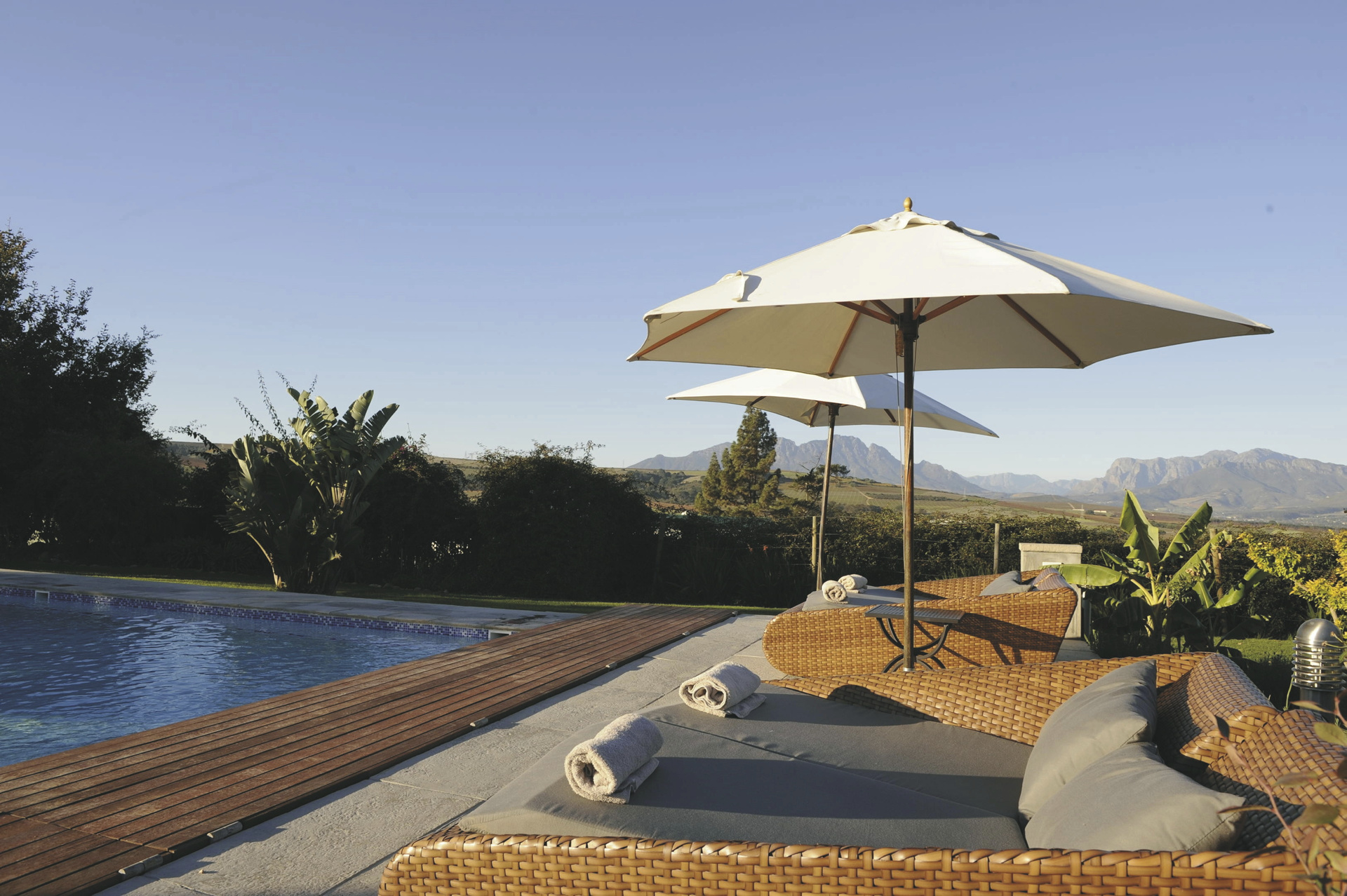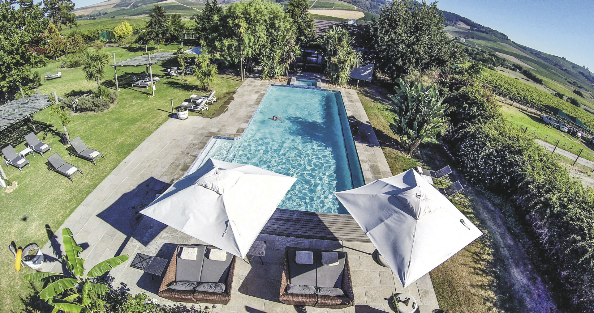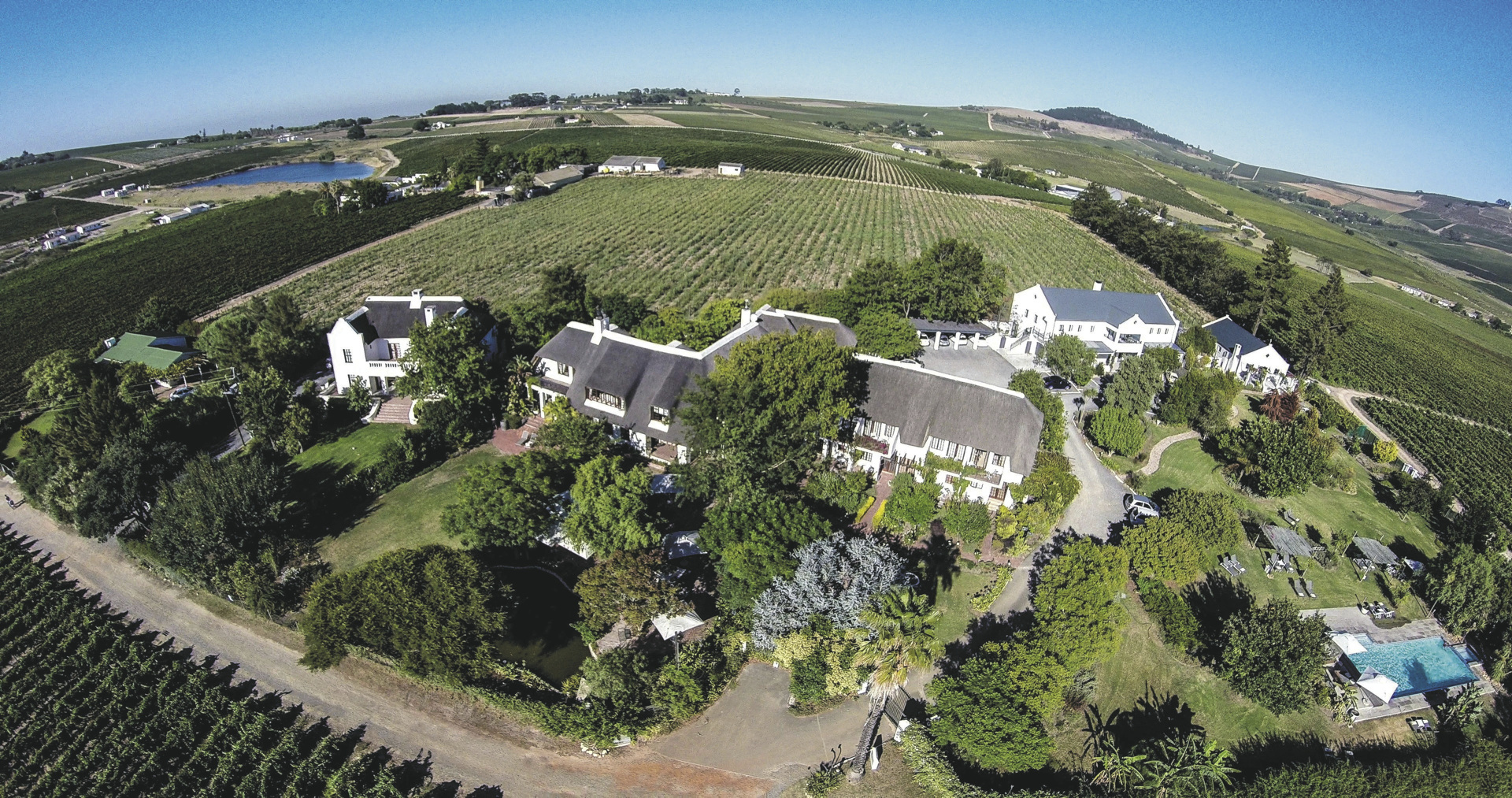 In ruhiger Lage, ca. 10 km außerhalb von Stellenbosch.