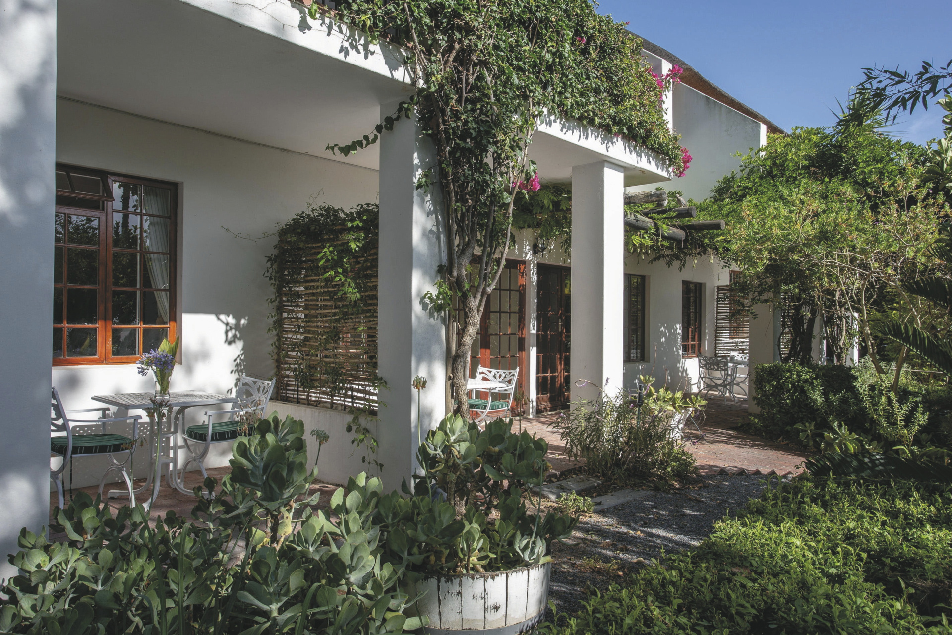 18 liebevoll dekorierte Zimmer und Suiten in verschiedenen Kategorien stehen zur Auswahl. Alle sind ausgestattet mit eigenem modernem Bad, Klimaanlage/Heizung, Fön, Telefon, Ventilator, kostenlosem WLAN, Safe, Tee-/Kaffeezubereiter, TV, Fußbodenheizung, Minibar, Terrasse oder Balkon. Die Gartenzimmer bieten einen wunderschönen Blick in die grüne Oase oder aus der erste Etage über die Weinanbaugebiete von Stellenbosch. Einige Zimmer und Suiten können durch Verbindungstüren perfekt für Familien mit Kindern kombiniert werden.