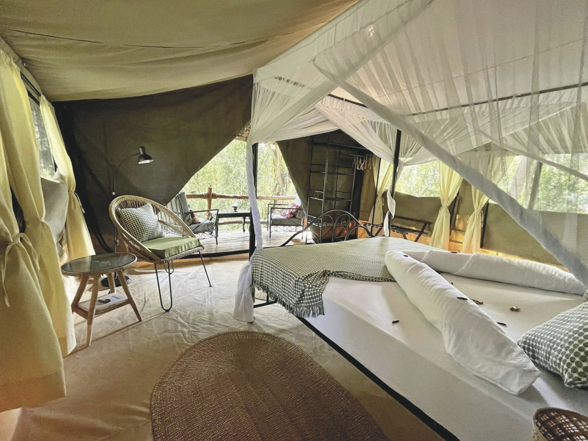 Alle 22 Bungalows wurden in einem eigenen tansanischen Thema dekoriert und verfügen über ein Bad, Moskitonetze und eine Terrasse. In einer kleinen Baumgruppe versteckt ist das Treehouse, ein voll eingerichtetes Hauszelt.