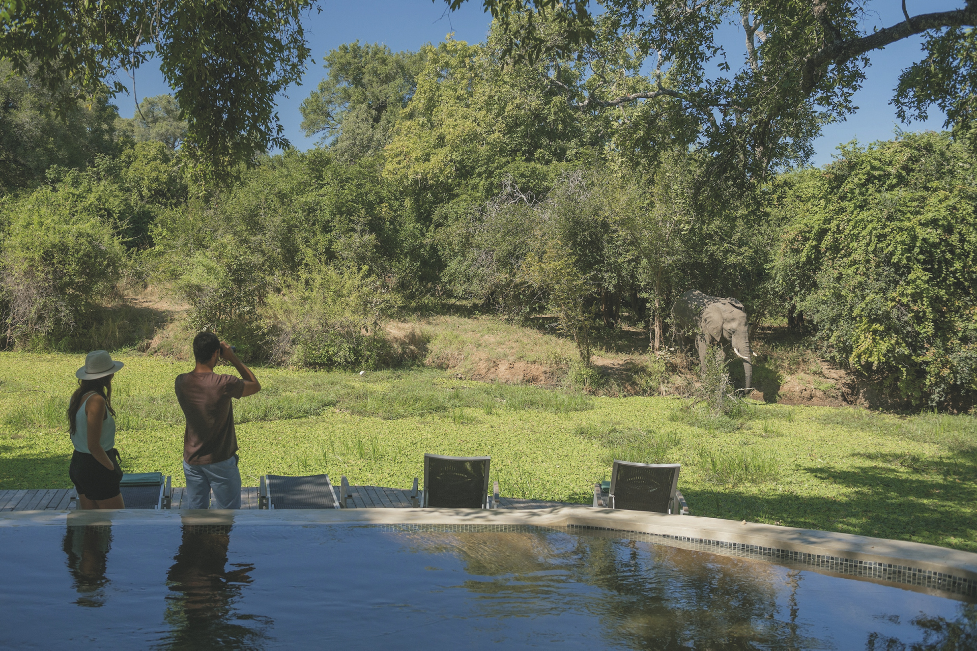 Das intime und authentische Camp bietet beeindruckende Blicke auf die Lagune und den Luangwa Fluss. Unter einem großen Strohdach inmitten der üppigen Vegetation direkt am Fluss befindet sich die Bar mit gemütlichen Sitzgelegenheiten und die Feuerstelle für gemeinsame Abende unter dem Sternenhimmel. Nahe der Lagune liegt der Speisebereich und ein Pool, der an heißen Tagen eine optimale Abkühlung bietet.
