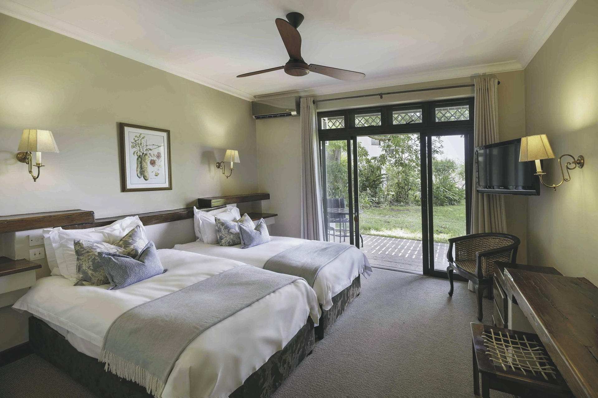 Die Lodge hat insgesamt 60 Zimmer, diese sind ausgestattet mit Bad/DU/WC, Fön, Klimaanlage und Deckenventilator, Tee-/Kaffeezubereiter und Safe. Alle Zimmer sind in Richtung der Victoria Wasserfälle und des Nationalparks ausgerichtet. Oft grasen Wildtiere auf dem Rasen und die Fenster und Türen klappern durch die Kraft des Wassers der majestätischen Wasserfälle.